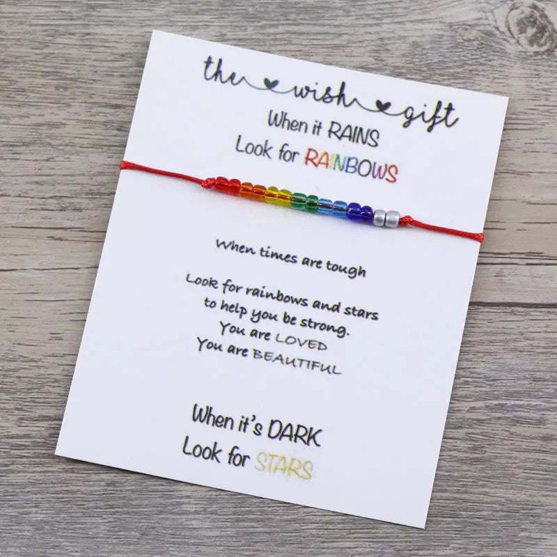 A rainbow bracelet to remind them to always look for rainbows and stars during their darkest times.