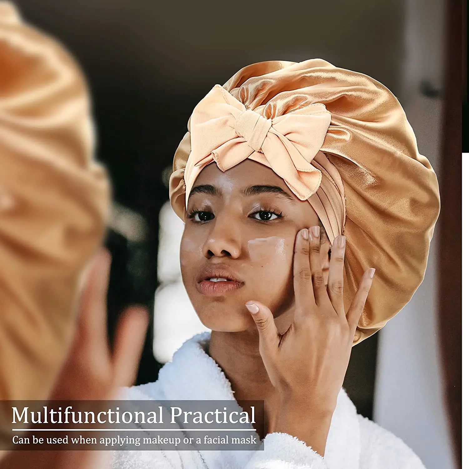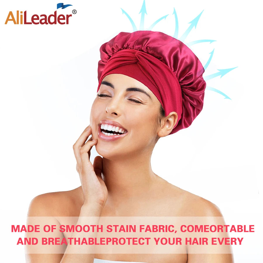 Anti-slip Bonnet:Wide stretchy soft Band,you can adjust and Tie the Band by yourself, perfectly solve the problem of Bonnet off your head while Sleeping