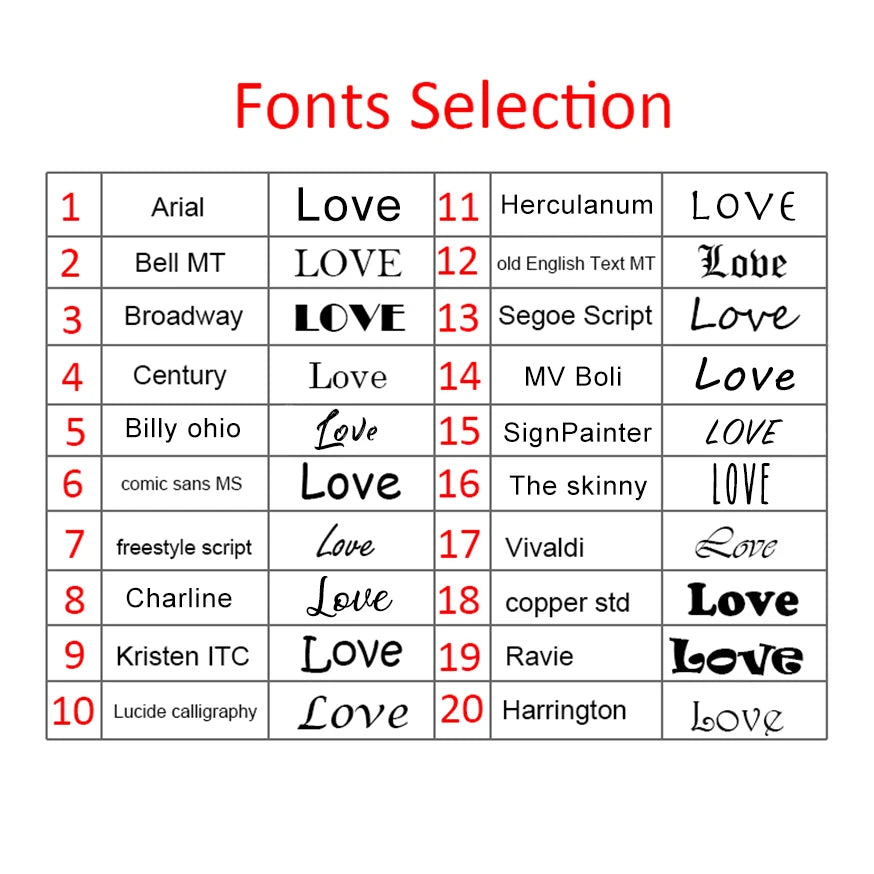 Choose the font or Symbols you want, and tell the customer service the corresponding Arabic numerals or leave a note.